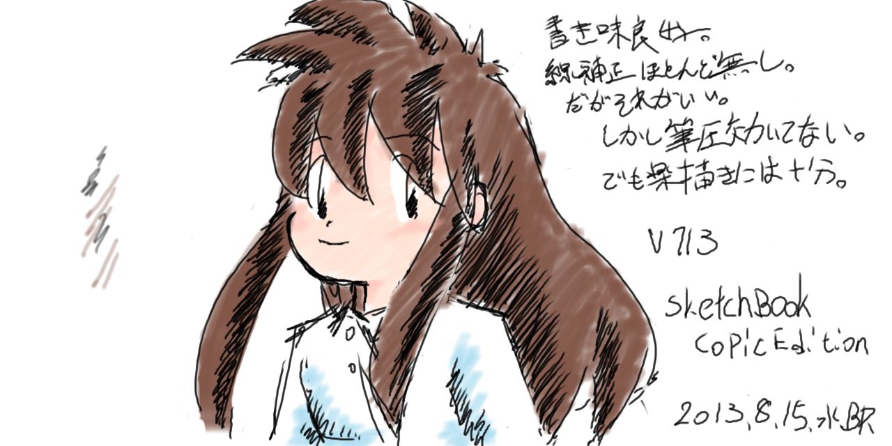 そのせいとも思えないが、絵を見ればわかるようにブラシが最大筆圧で描かれてしまう不具合が頻出する。
